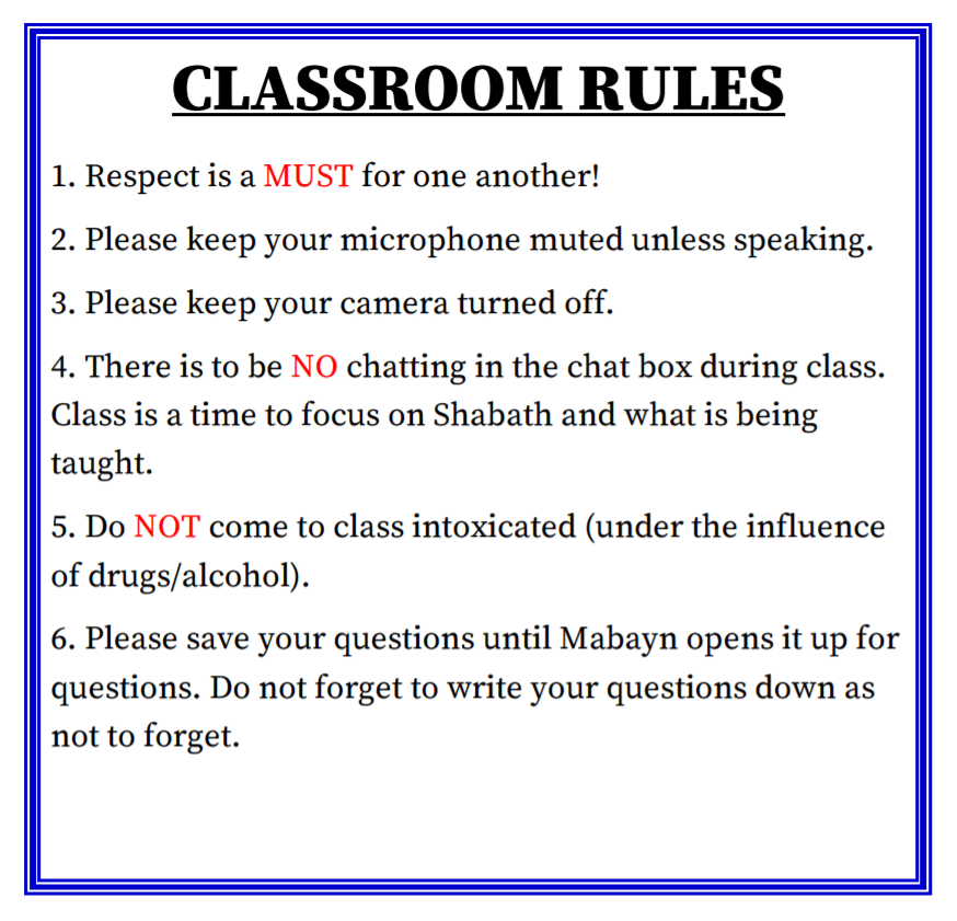 CLASSROOM RULES & FREQUENTLY USED TERMS